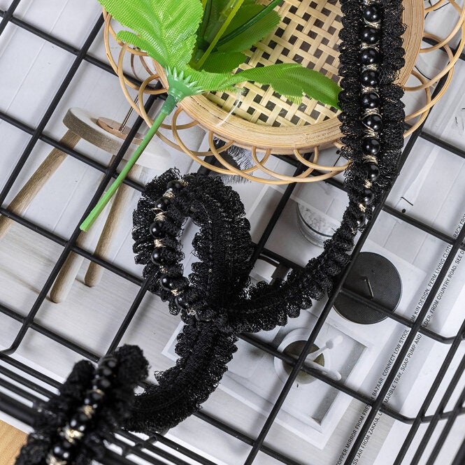 5 Yard 2cm 0 78 Wide Ivory Black Beads Ruffled Pleated Etsy Uk